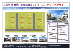 【三豊市高瀬町上高瀬】新築応援キャンペーンにてプライスダウン★